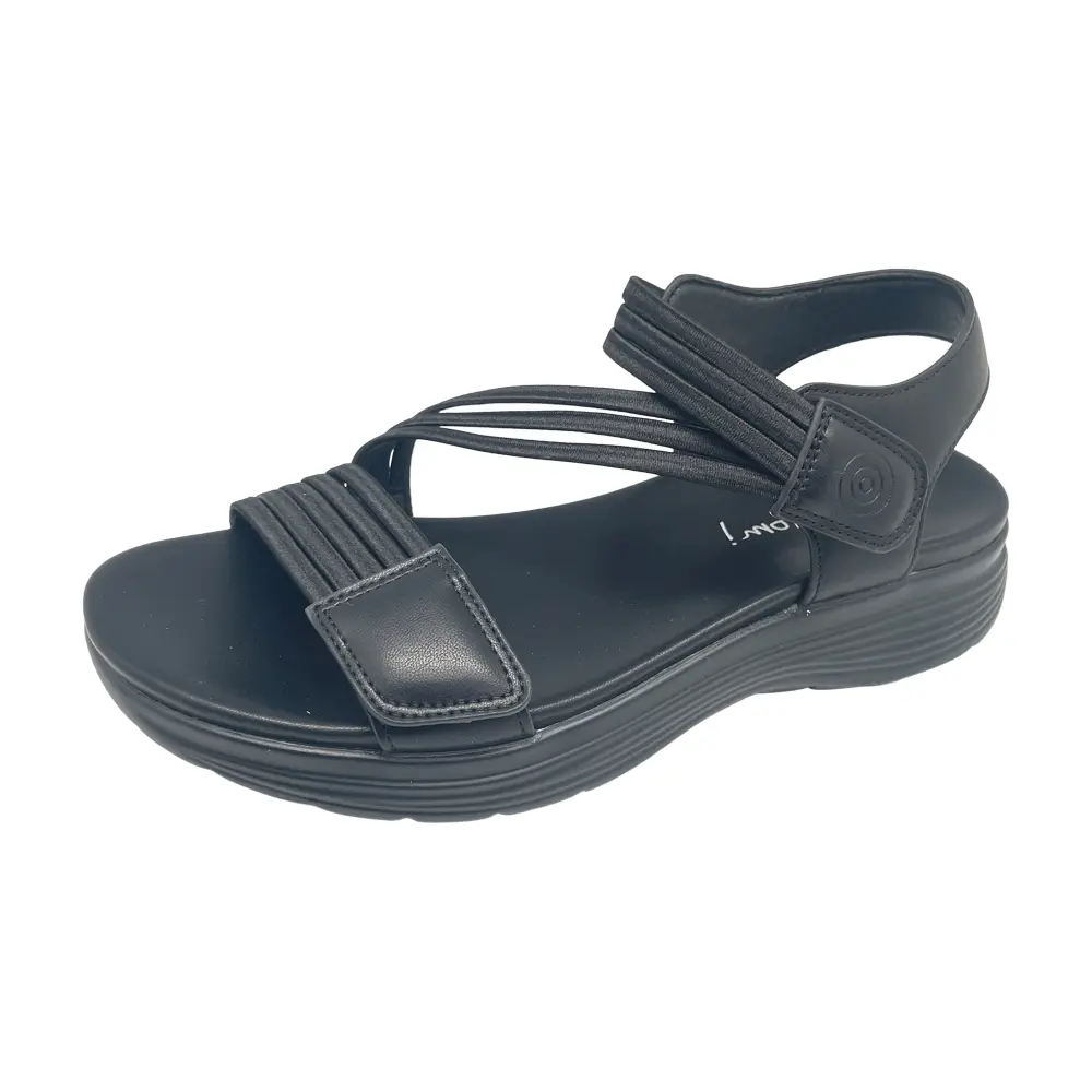 Put your feet first with the Freedom Sports style PLUME in BLACK. These Summer sandals are crafted from Soft Nubuck-like material and feature straps of verlcroed elastic for Premium Fit. The Wedge is super sturdy and features a full foot-form inlay sock. Wear all day - Your feet will be in heaven!