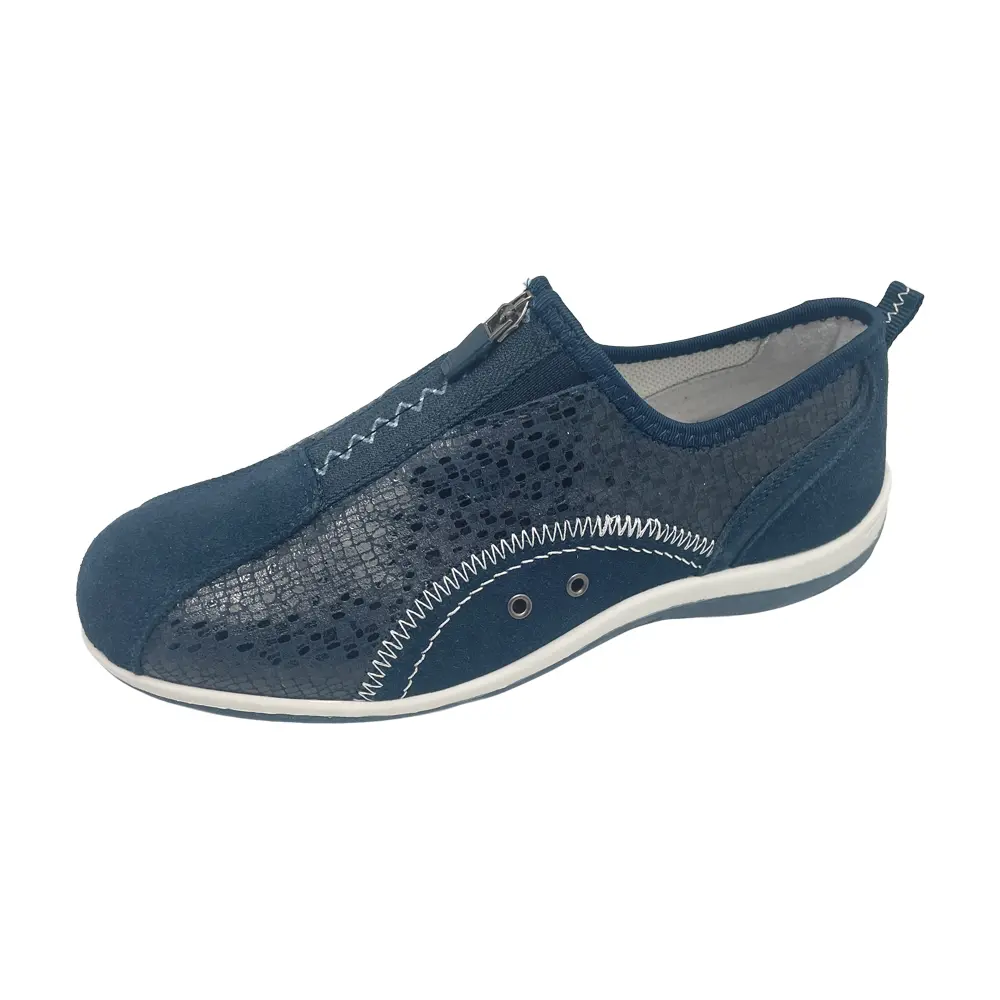 Freedom style BOUNCER in NAVY Suede Embossed Leather is a Sporty Casual with Centre Zip. The upper features a mixture plain Suede and Suede with an Embossed pattern. The casual is leather lined and has a leather footbed insole. It sits upon a sturdy Rubber sole.
