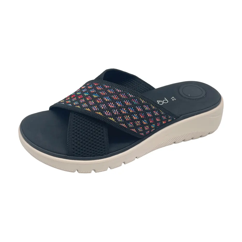 Put your feet first with the Freedom Sports style FLAME in BLACK. These Summer slides combine the in fashion Sports Sandal look but as a Slip-On Slide. The upper a X pattern feature a plain woven strap offset against a Multi Woven Fabric strap. The Insole is emboss EVA with footform shape and padded for comfort. The Sports Sole is made from Lightweight EVA to enhance the light comfort effect. Sutiable for all day wear.